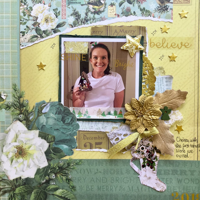 My stamping is very subtle but never the less is there . I stamped some tiny little stars to my layout. The stamp was gifted to my by my lovely Irish penfriend.